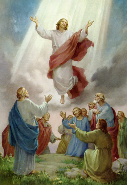 For forth days Jesus remained on earth after His Resurrection. He established His Church and gave it wonderful powers. He talked to His friends, telling them about heaven, and about the work they must do first for God and souls. Then one Thursday, He took them all up on Mount Olivet. He gave them His last instructions and said goodbye. Slowly by His own power, He began to rise from the earth. He stretched out His hands to bless them. He smiled down for the last time upon His Mother. At last a cloud covered Him, and He entered the joys of heaven. An angel then came to the Apostles and told them to go back and begin to work for souls. Some day they too would enter heaven and be happy forever.