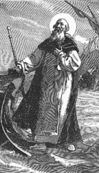 There a vision of the Mother of Mercy instructed him to cooperate with his penitent Saint Peter Nolasco, and with James, King of Aragon, in founding the Order of Our Lady of Ransom for the redemption of captives. He began this great work by preaching a crusade against the Moors, and by rousing to penance the Christians enslaved in both soul and body by the infidels. The king of Aragon, a man of great qualities but governed by a ruling passion, often took Saint Raymond with him on his voyages. On one such occasion, when they were visiting the island of Majorca, he was told by the Saint he must put away at once the cause of his sin. When he delayed, Raymond asked for leave to depart, since he could not live in company with sin. The king refused and under pain of death, forbade his conveyance by any ship. The Saint replied to the sailors, "If a mortal king has given such a command, we will see that the Eternal King has disposed otherwise." Full of faith, he went out on a rock extending into the sea, and spread his cloak upon the waters. Tying one end of it to his staff as a sail, he made the sign of the cross and fearlessly stepped upon it. In six hours he was borne to Barcelona where, gathering up his cloak, which was dry, he made his way to his monastery.